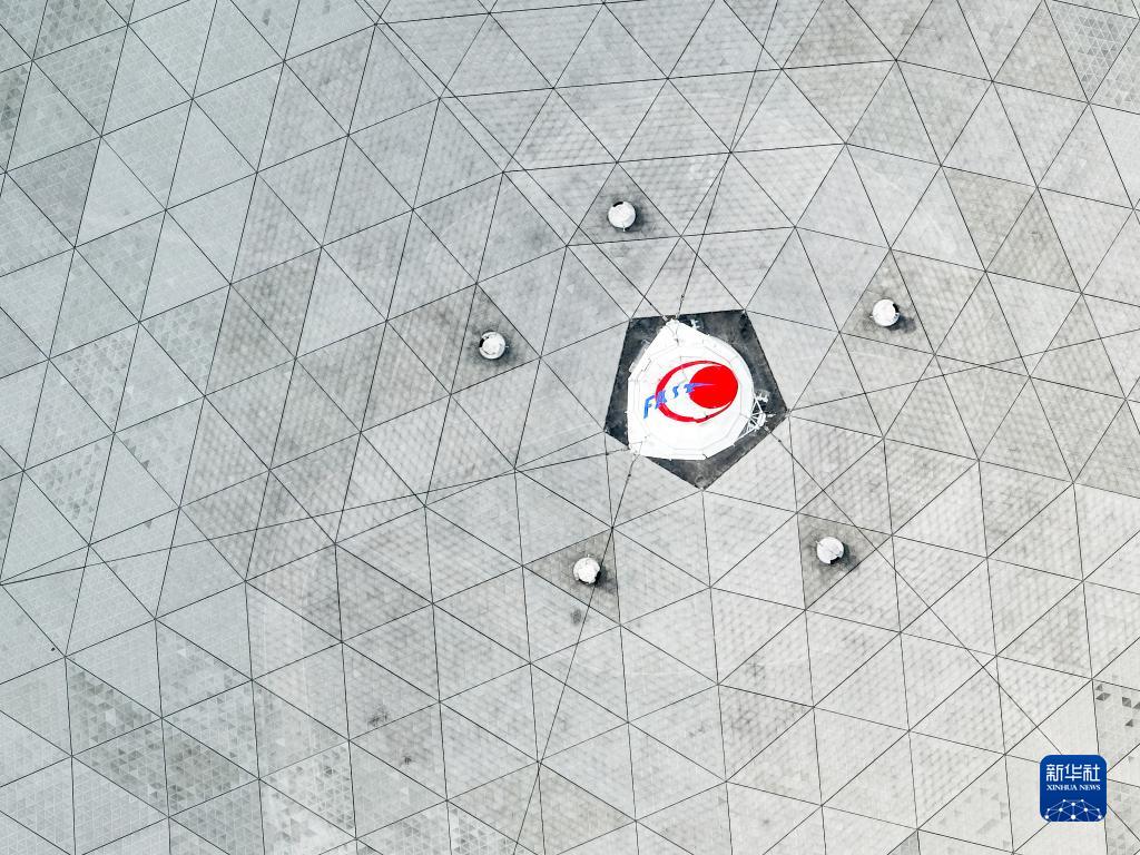7月26日拍攝的“中國天眼”饋源艙(維護保養期間無(wú)人機拍攝)。