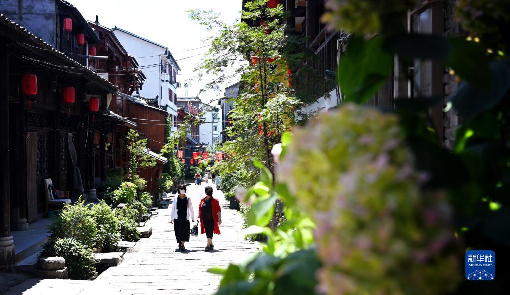 7月25日,游客在陜西省漢中市留壩縣城老街上游玩,老街上分布著(zhù)多家民宿。