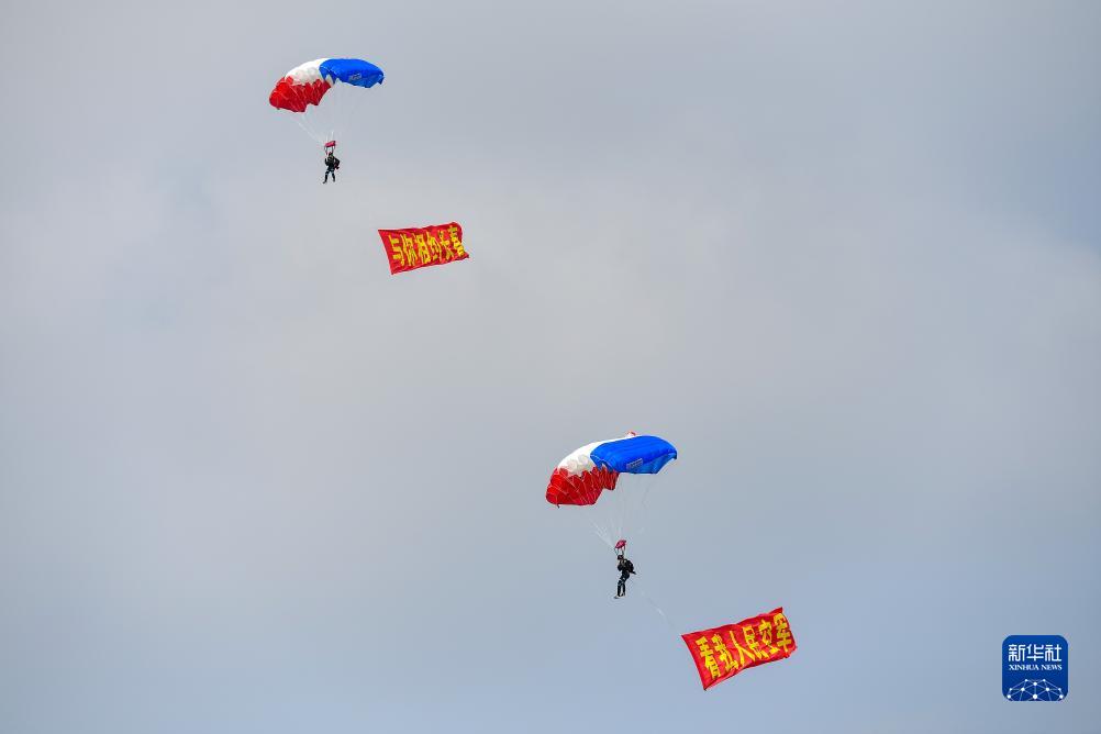 7月26日,在2023年空軍航空開(kāi)放活動(dòng)·長(cháng)春航空展上,空軍航空大學(xué)“藍鷹”跳傘表演隊進(jìn)行表演。