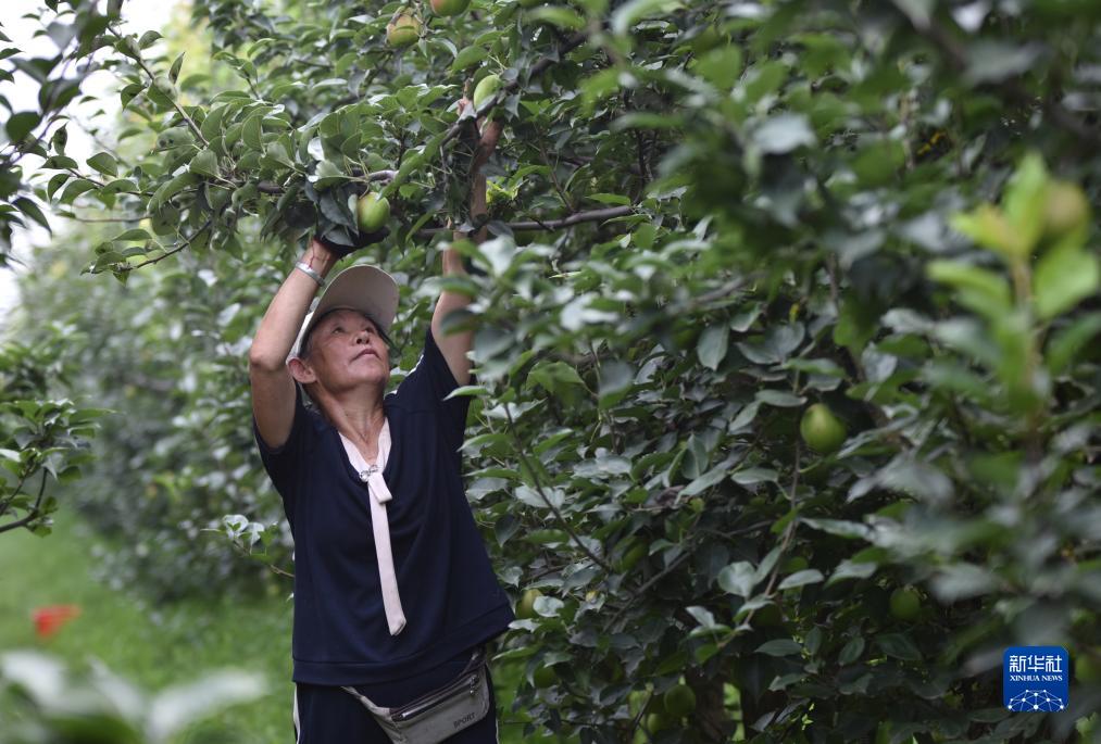 7月27日,河北省威縣張營(yíng)鄉前花疃村果農在梨園采摘梨果。