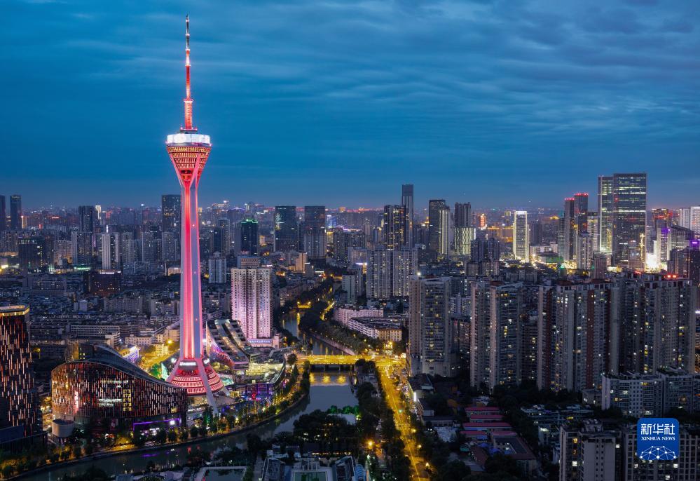 夜幕下的成都電視塔(6月1日攝)。