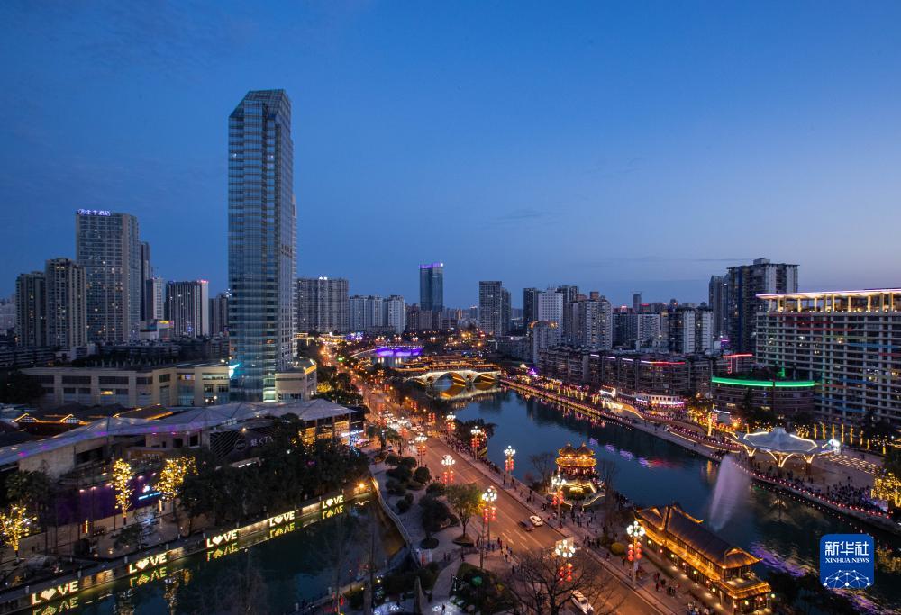 夜幕下的成都市合江亭(2月16日攝)。