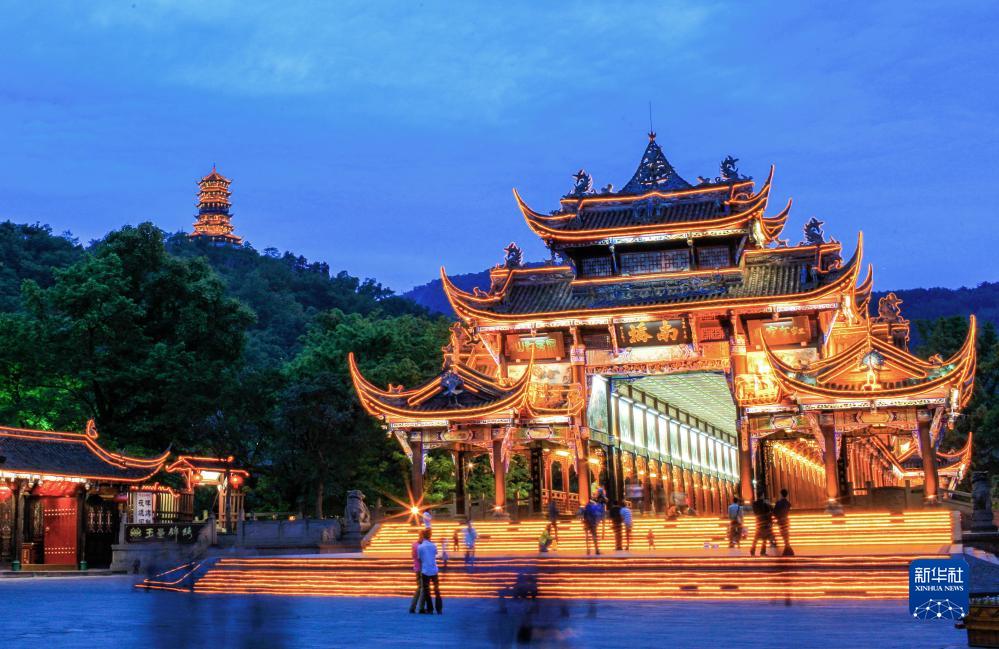 夜色中的都江堰市南橋(5月14日攝)。