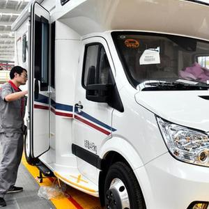 7月27日,在位于莒縣的大馳智能房車(chē)(日照)有限公司,工作人員在裝配房車(chē)。