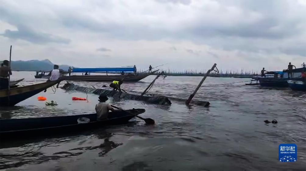 7月27日,在菲律賓黎剎省,人們在傾覆船只附近救援。