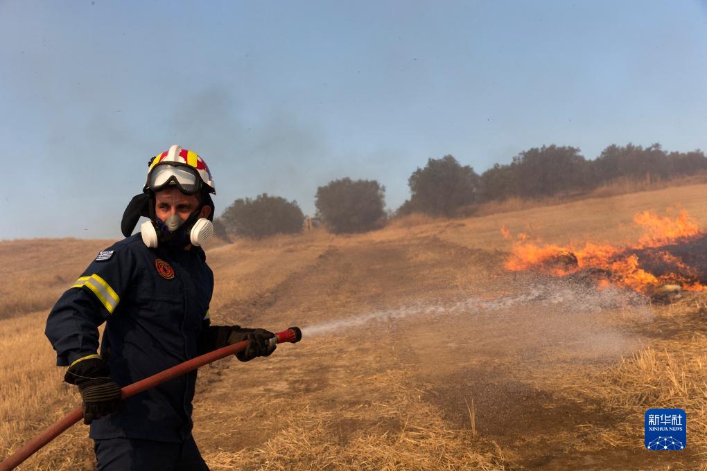 7月27日,消防員在希臘沃洛斯郊外參與滅火。新華社發(fā)(馬里奧斯·羅洛斯攝)