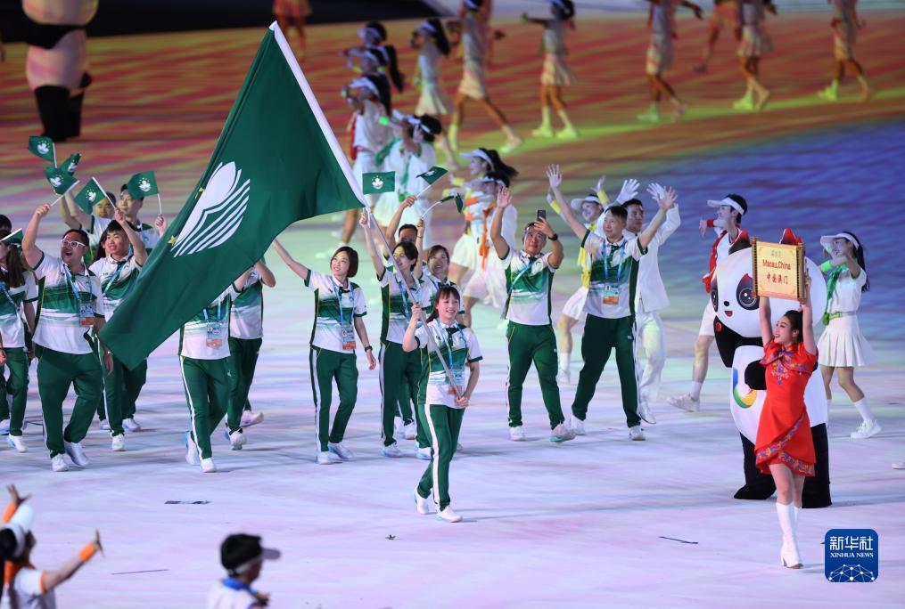 7月28日,中國澳門(mén)大學(xué)生體育代表團在開(kāi)幕式上入場(chǎng)。