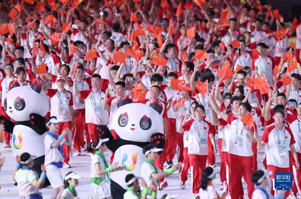 7月28日,中國大學(xué)生體育代表團在開(kāi)幕式上入場(chǎng)。