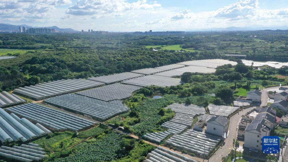 這是位于江西省南昌市新建區金橋鄉的葡萄種植園一景(7月27日攝,無(wú)人機照片)。