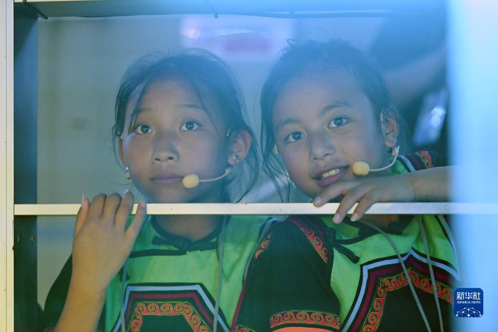 7月16日,吉合拉作(左)與馬杰英在成都大運會(huì )開(kāi)幕式彩排現場(chǎng)觀(guān)看演出。新華社記者 胥冰潔 攝