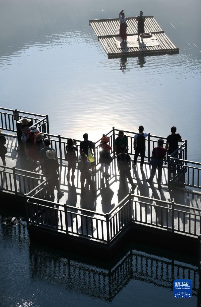 7月26日,游客在湖南省資興市小東江游覽。