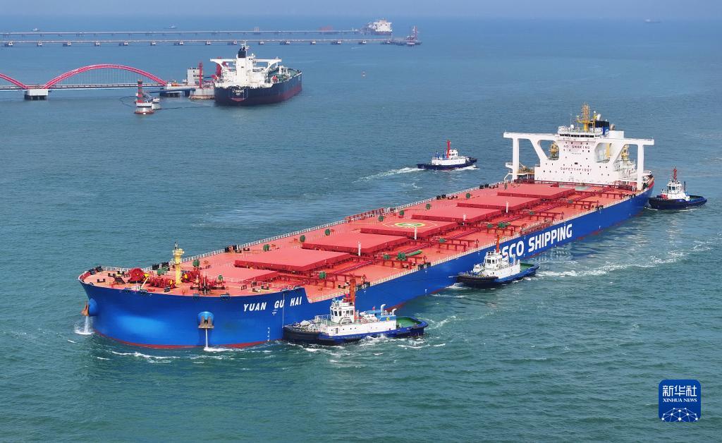 河北曹妃甸港區:40萬(wàn)噸“巨無(wú)霸”礦船滿(mǎn)載靠泊