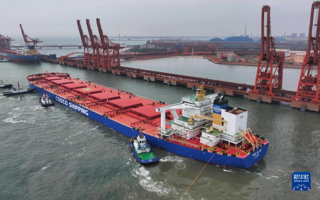 河北曹妃甸港區:40萬(wàn)噸“巨無(wú)霸”礦船滿(mǎn)載靠泊