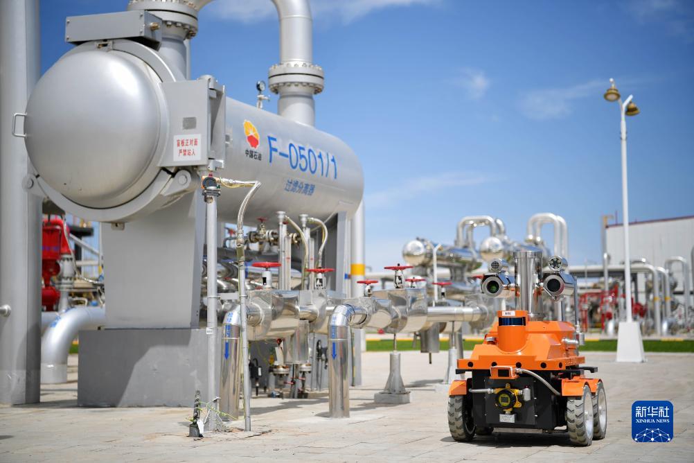 智能巡檢機器人在中國石油長(cháng)慶油田第三采氣廠(chǎng)蘇里格天然氣第六處理廠(chǎng)進(jìn)行日常巡檢(7月23日攝)。