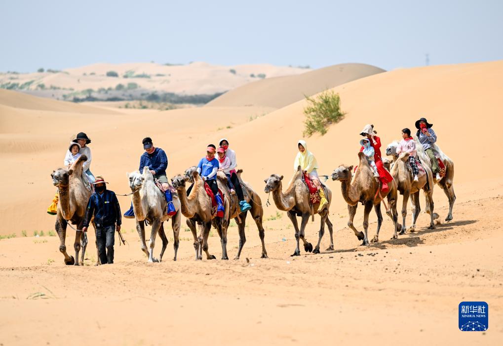 盛夏時(shí)節,內蒙古鄂爾多斯市達拉特旗境內的庫布其沙漠游客絡(luò )繹不絕,沙漠旅游一派火熱。游客們在飽覽大漠美景的同時(shí),也體驗騎駱駝、滑沙等項目的獨特魅力。