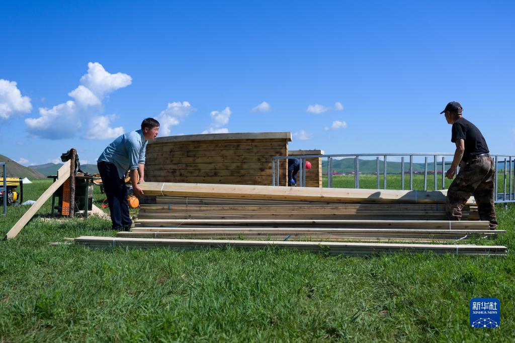 7月25日,吳蘇道(左)與工人一起搬運木材,準備建設露天餐廳。
