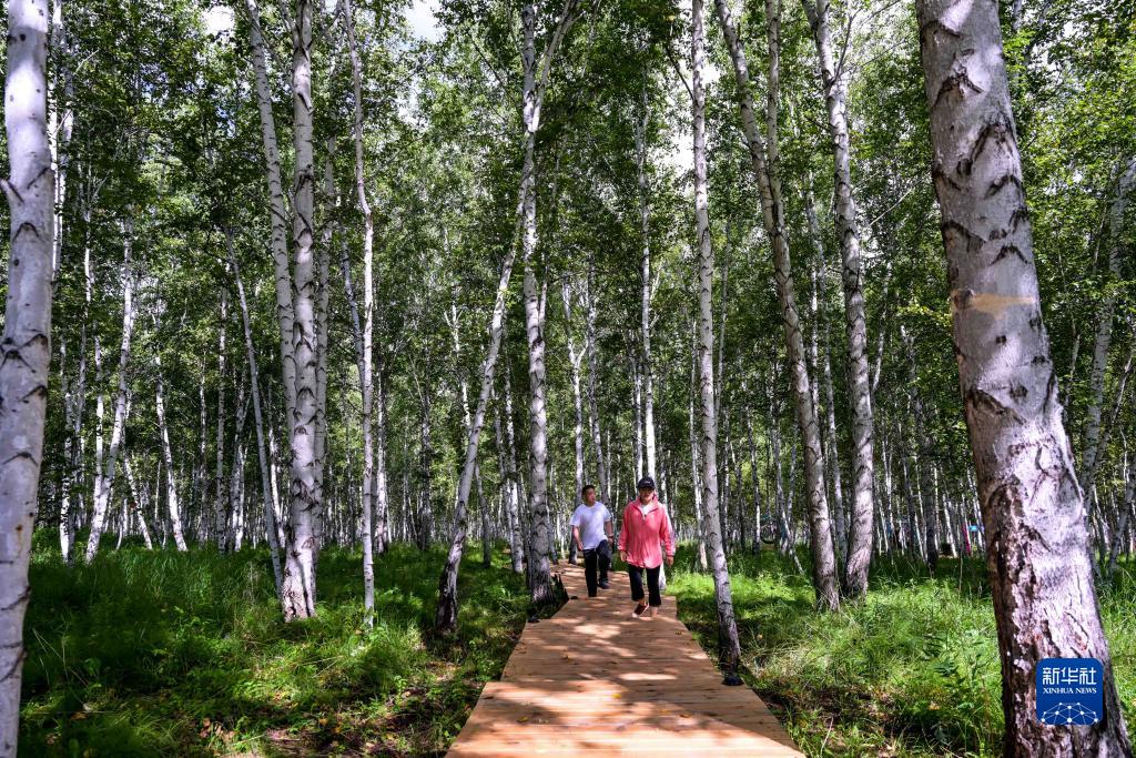 夏日時(shí)節,內蒙古自治區呼倫貝爾市牙克石市鳳凰山景區草木蔥蘢,景色宜人,吸引游客前來(lái)游玩。
