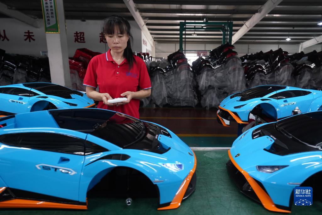 7月29日,河北省平鄉縣一家童車(chē)生產(chǎn)企業(yè)的員工在測試電動(dòng)童車(chē)。