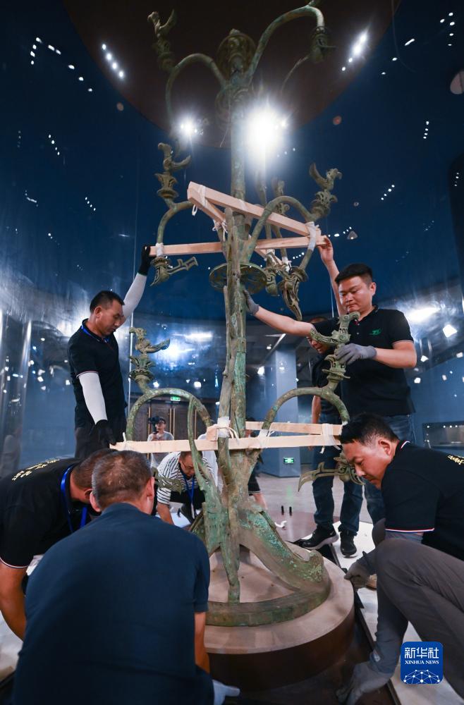 經(jīng)過(guò)一個(gè)多月時(shí)間的閉館后,7月27日,三星堆博物館新館在四川德陽(yáng)廣漢市試運行,一大批珍貴文物再次與公眾見(jiàn)面。其中,高3.96米、重360斤的Ⅰ號大型銅神樹(shù)是三星堆的“鎮館之寶”,也是新館的“壓軸之作”。在充分討論搬遷方案后,工作人員用兩天時(shí)間成功完成了它的保護性固定、分離、轉運、入庫等環(huán)節,并在新館試運行后正式展出。