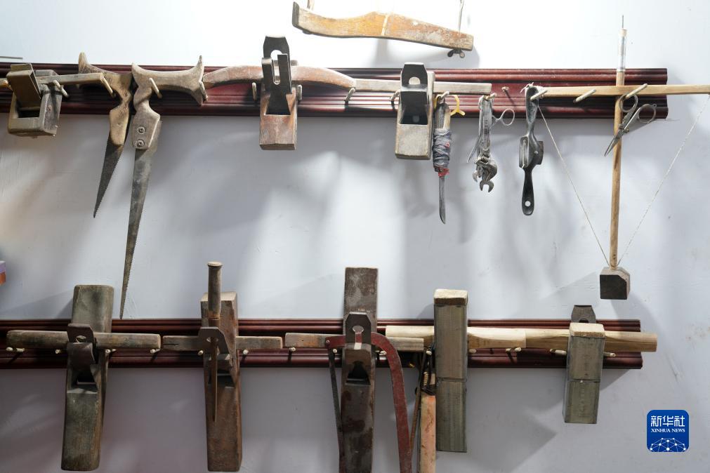 侯全辰制作孔明鎖所用的工具(7月30日攝)。