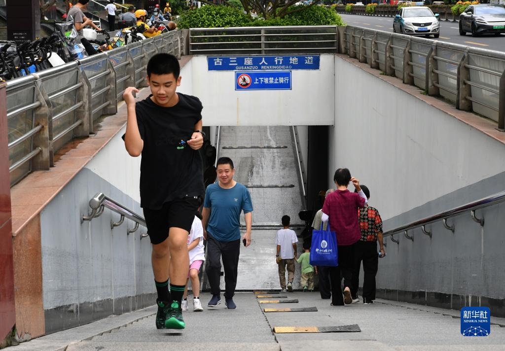 7月30日,位于福州市鬧市區五四路上的古三座地下人行通道積水退去,恢復通行。