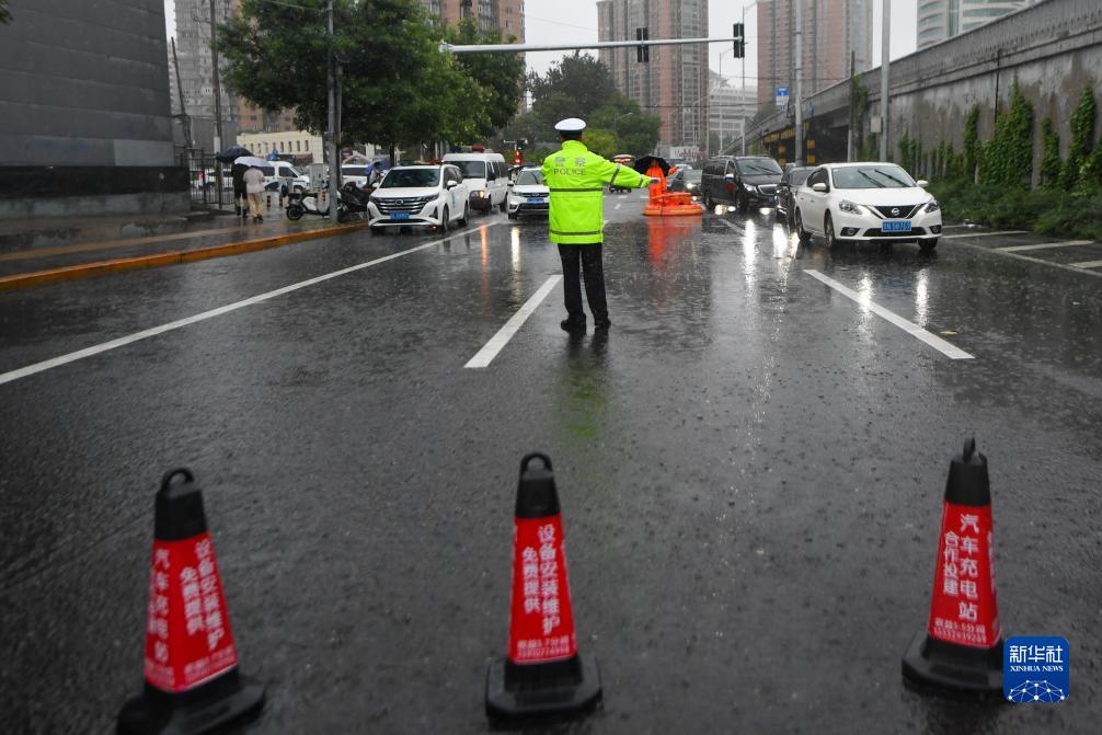 7月30日,在北京市朝陽(yáng)區十里河橋附近,交警在疏導交通。