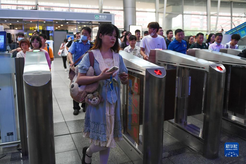 8月1日,旅客從北京南站檢票進(jìn)站乘坐京津城際列車(chē)出行。