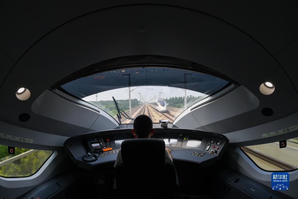 7月26日,一位駕駛員在駕駛京津城際列車(chē)。