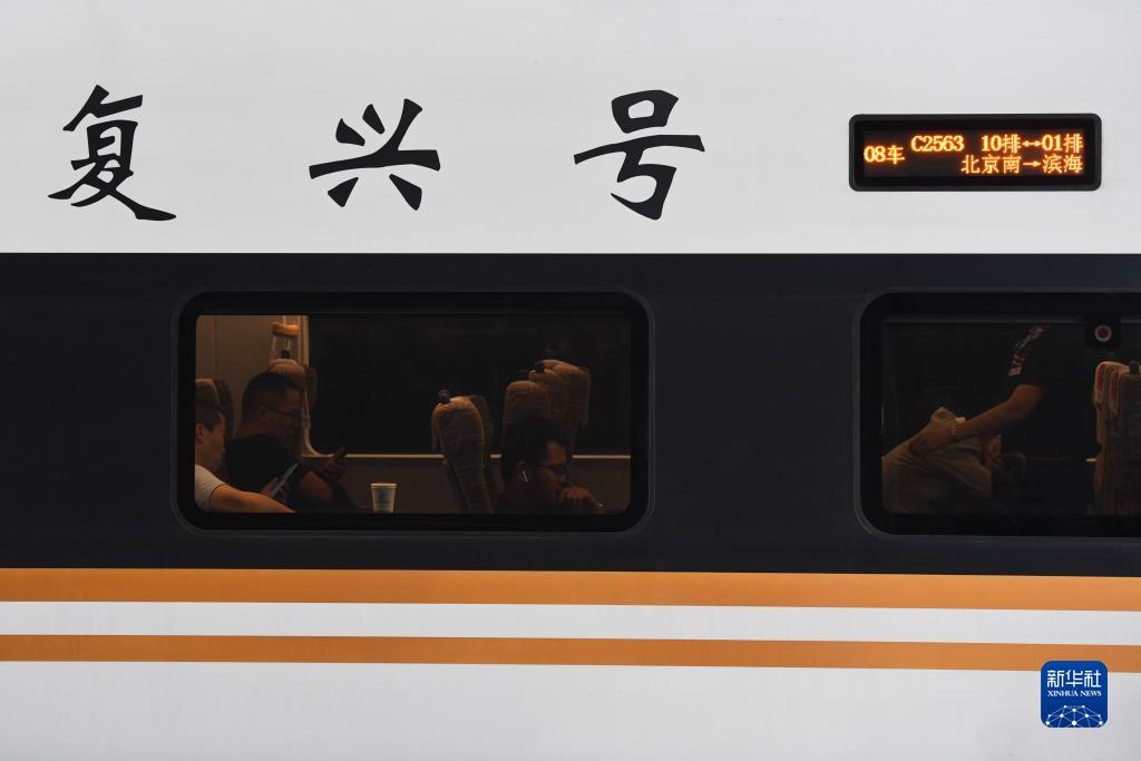8月1日,在北京南站,旅客乘坐京津城際列車(chē)出行。