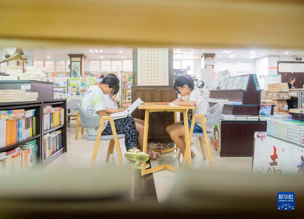 8月1日,幾名學(xué)生在湖南省永州市道縣新華書(shū)店閱讀。