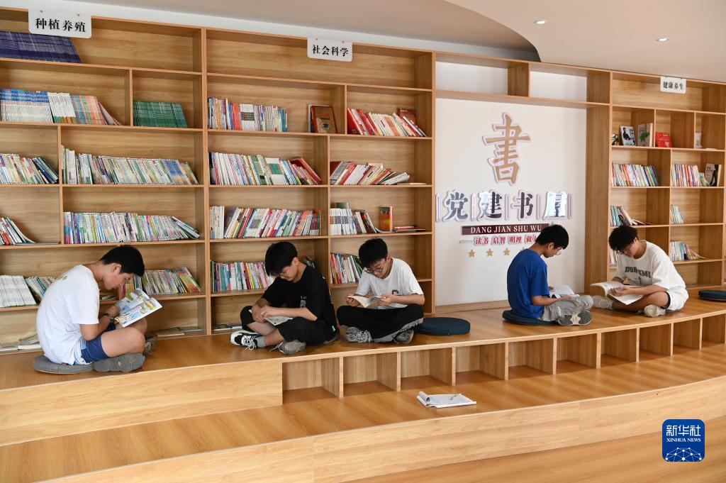 7月31日,在河南省沁陽(yáng)市西萬(wàn)鎮校尉營(yíng)村黨建書(shū)屋,幾名學(xué)生在閱讀。