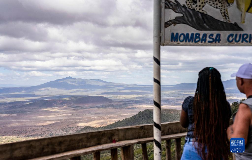 這是1月2日,兩名游客在肯尼亞裂谷省的東非大裂谷觀(guān)景點(diǎn)欣賞景色。