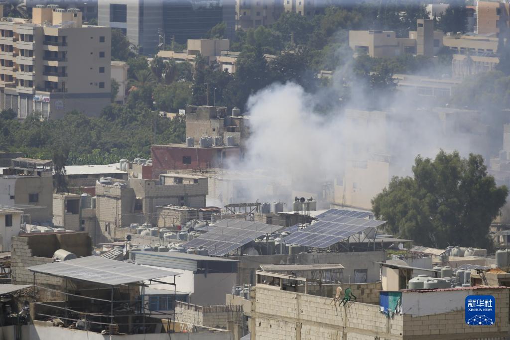 8月1日,在黎巴嫩南部西頓市附近的艾因·哈勒瓦難民營(yíng),燃燒的房屋升起濃煙。