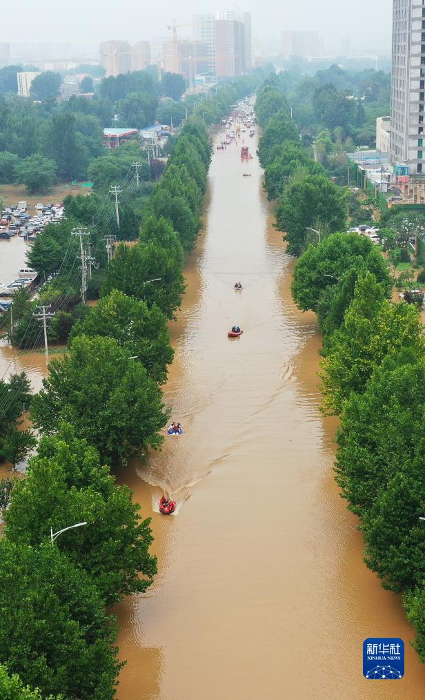 8月2日,救援人員在河北省涿州市市區內轉移群眾(無(wú)人機照片)。