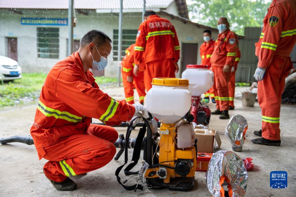 8月2日,在桃江縣桃花江國有林場(chǎng),護林員在調試治理竹蝗的設備。