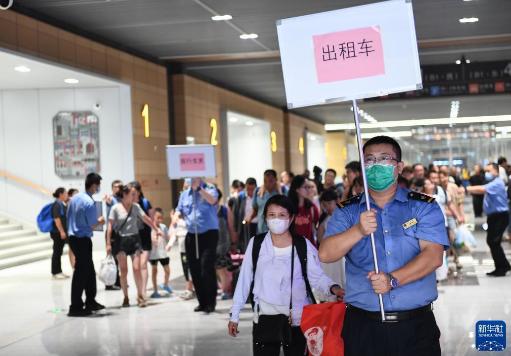 8月2日,北京豐臺站工作人員引導K396次列車(chē)旅客有序出站。