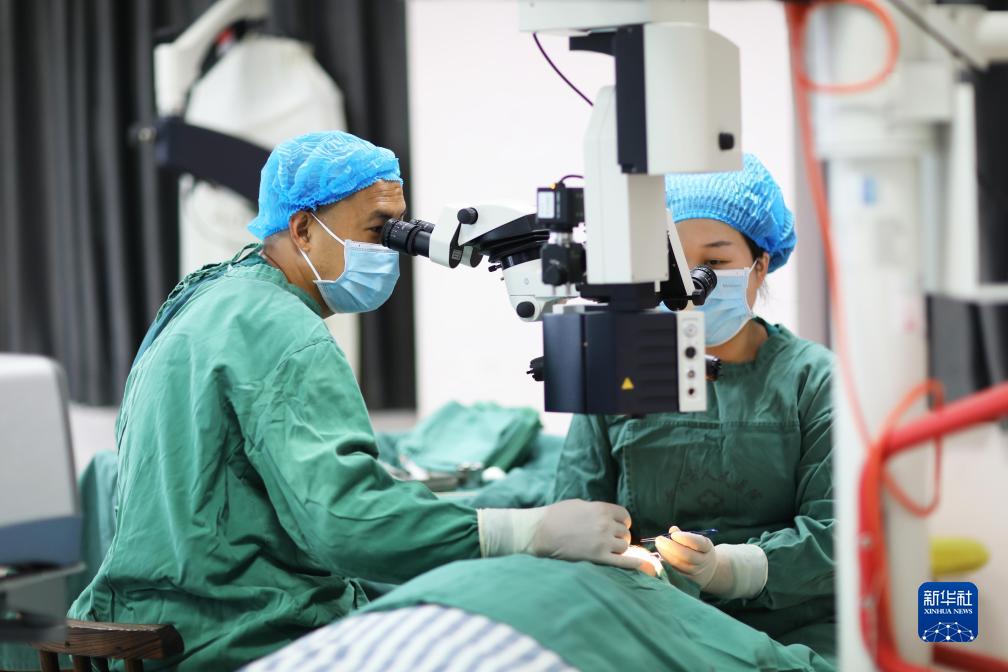 8月2日,在赤水市人民醫院,眼科醫生為患者實(shí)施手術(shù)。