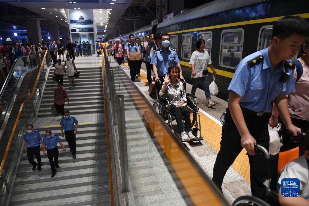 8月3日,K396次、Z180次列車(chē)的滯留旅客到達北京豐臺站。