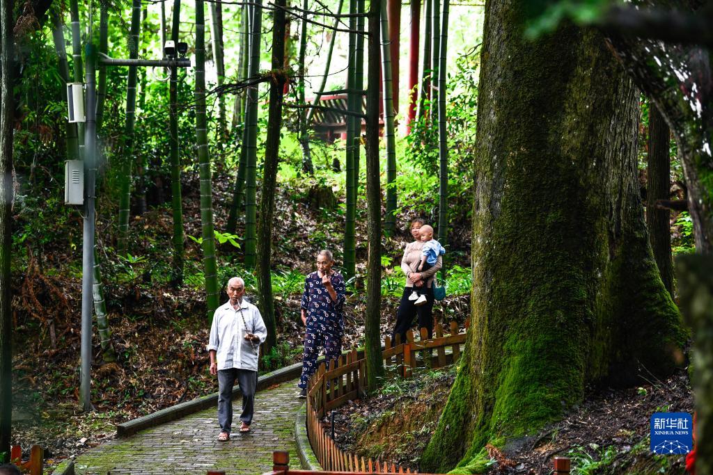 8月2日,村民在貴州省岑鞏縣客樓鎮下寨村的步道上散步。