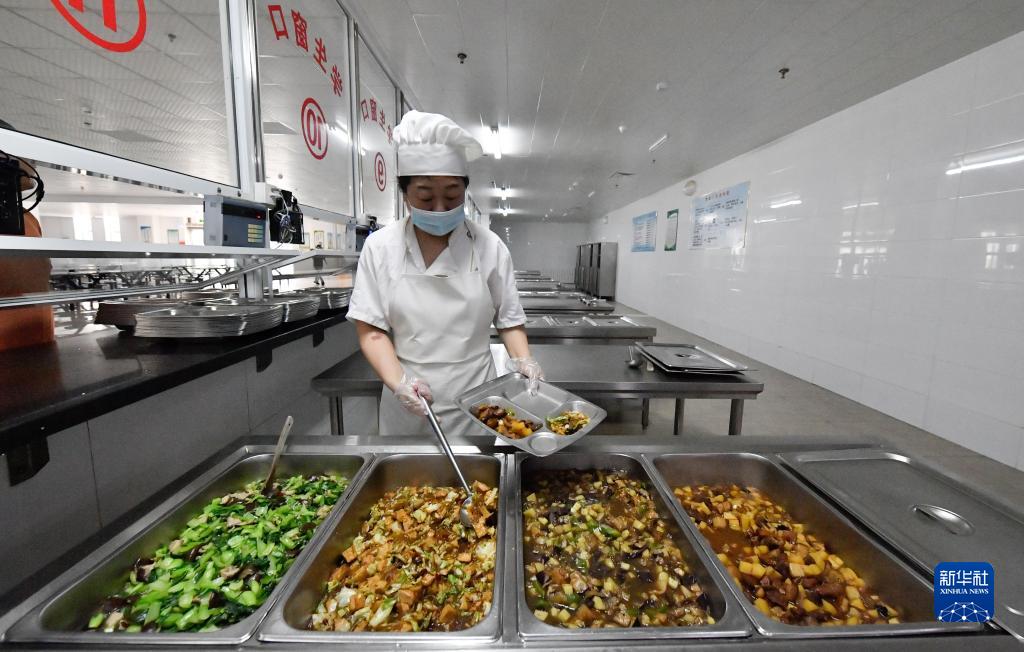 8月3日,在天津市靜海區第六中學(xué)臨時(shí)安置點(diǎn),工作人員為轉移群眾準備午飯。