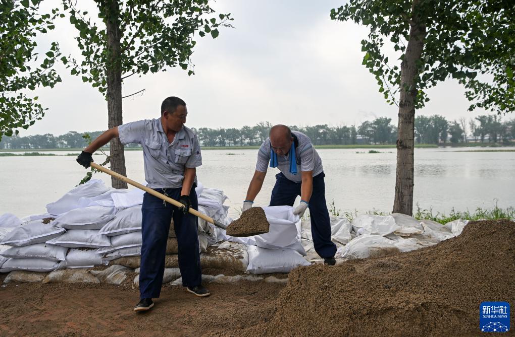 當日,來(lái)自中建、中交等多個(gè)單位的工人和靜海區當地村民共千余人忙碌在大清河天津市靜海段南北兩岸,持續進(jìn)行兩岸堤壩加高加固工作,以應對大清河河道內不斷增長(cháng)的上游來(lái)水。