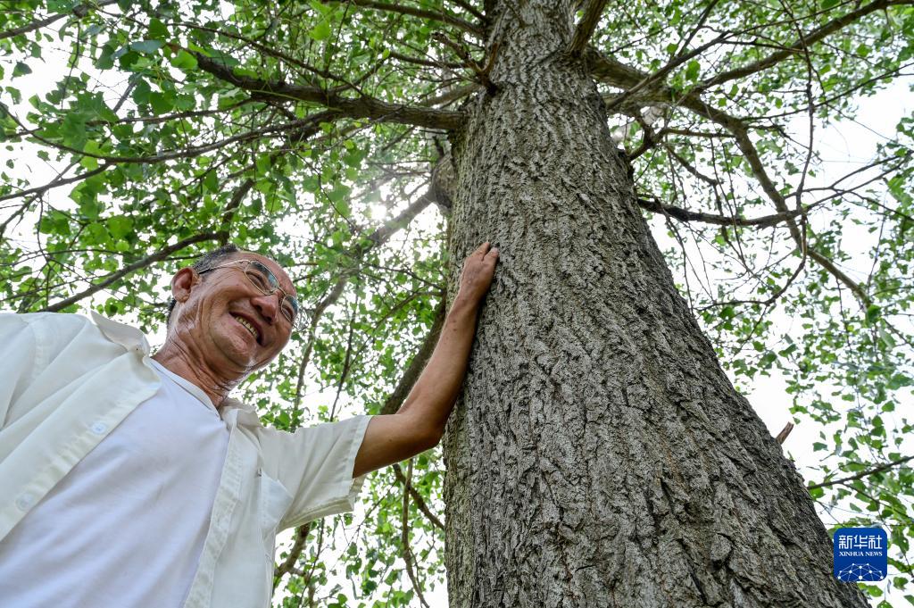 8月2日,百順撫摸他種的第一棵樹(shù)。