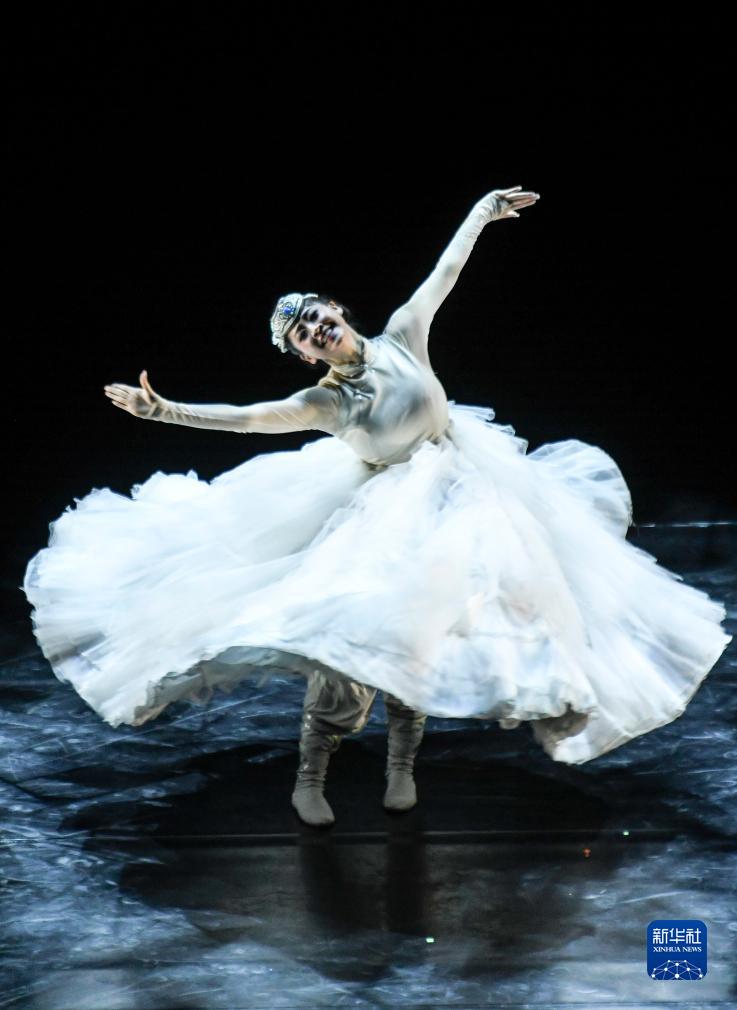 8月3日晚,北京舞蹈學(xué)院青年舞團演員在新疆藝術(shù)劇院劇場(chǎng)演出。