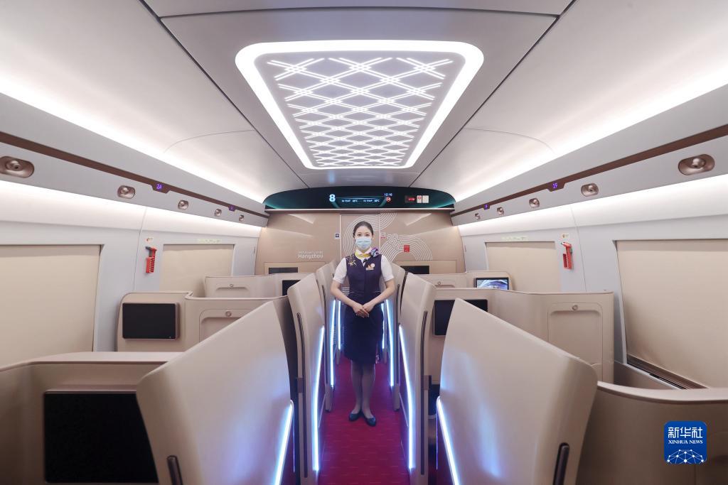 當日,由浙江交通集團購置、為杭州第19屆亞運會(huì )量身定制的復興號亞運智能動(dòng)車(chē)組搭載近百名乘客從杭州西站出發(fā),在合杭高鐵湖杭段開(kāi)啟首次試乘活動(dòng)。復興號亞運智能動(dòng)車(chē)組采用杭州亞運會(huì )主形象色“虹韻紫”涂裝,針對浙江多丘陵山地的地形特點(diǎn)采用定制化的技術(shù)創(chuàng )新方案,提升了乘客的乘坐舒適度,將在杭州亞運會(huì )賽事期間承擔重要的交通轉運功能。