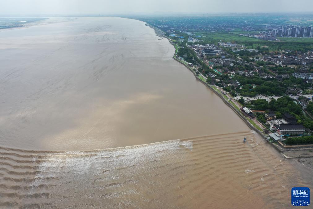 當日是農歷六月十八,號稱(chēng)“天下第一潮”的錢(qián)塘江大潮在海寧鹽官呈現“一線(xiàn)潮”奇觀(guān),吸引眾多游客觀(guān)賞。