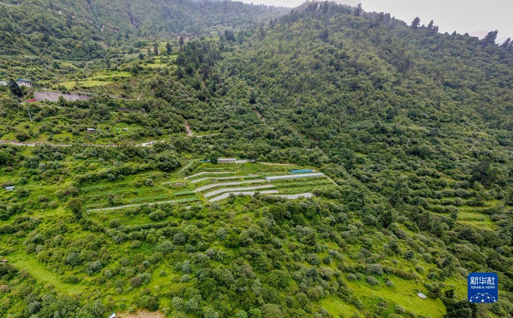 這是錯那市貢日門(mén)巴民族鄉斯木村的莓茶種植試驗田(無(wú)人機照片,7月28日攝)。