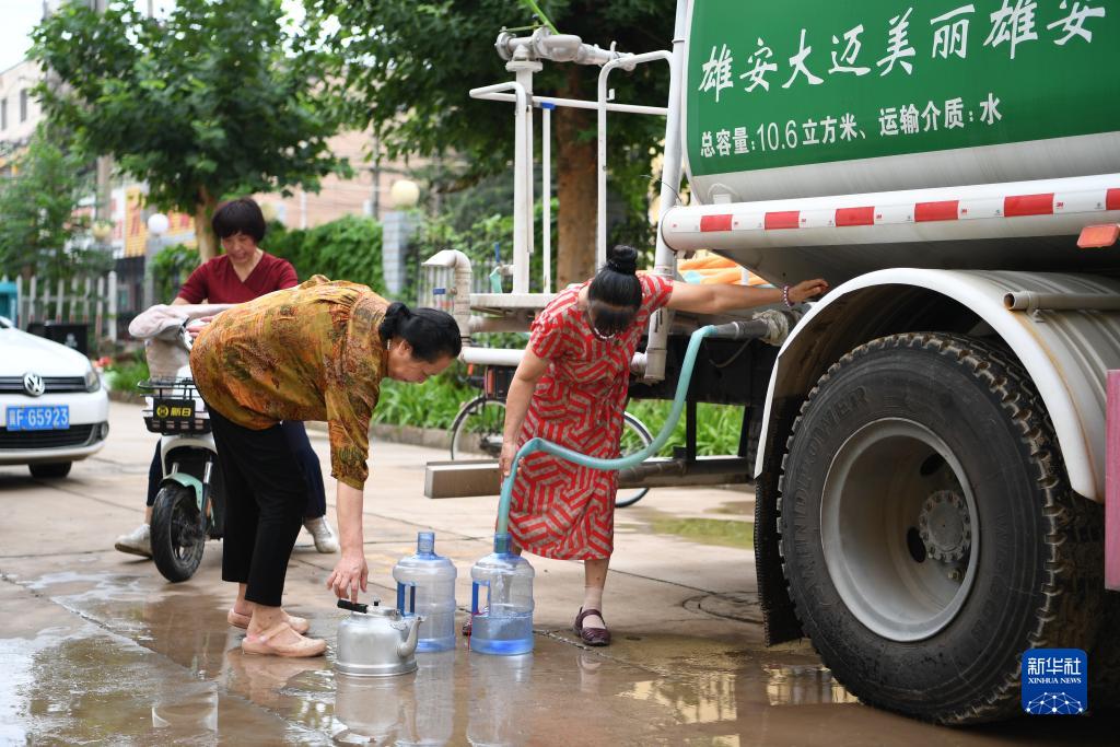 8月4日,河北省涿州市新星小區居民從供水車(chē)里接水。