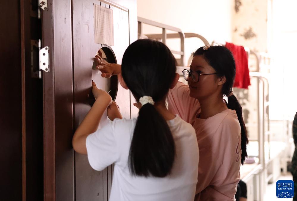 8月4日,被轉移的村民在吉林省舒蘭市第二十六中學(xué)安置點(diǎn)內收拾房間。
