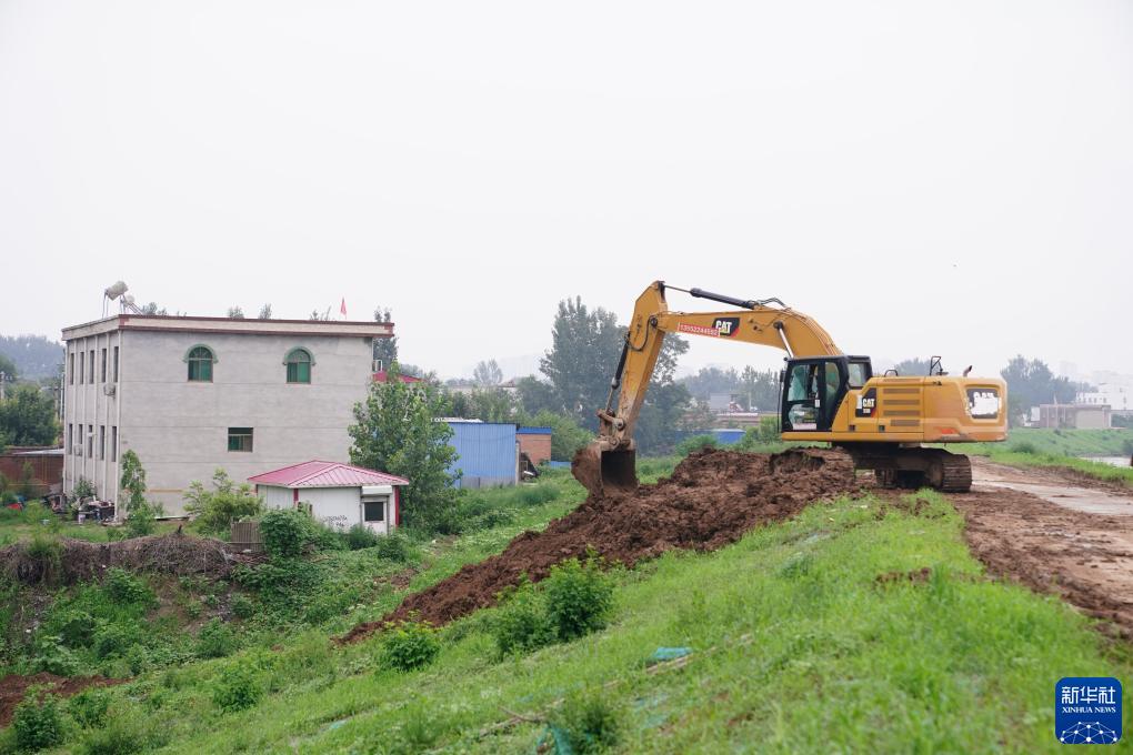 8月4日,工人操作機械在白溝河左堤白溝新城高橋村段進(jìn)行除險加固作業(yè)。