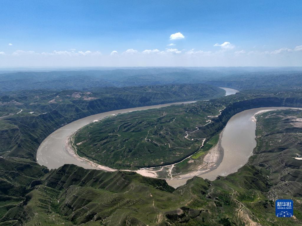 在山西省石樓縣辛關(guān)鎮拍攝的黃河奇灣(8月3日攝,無(wú)人機照片)。